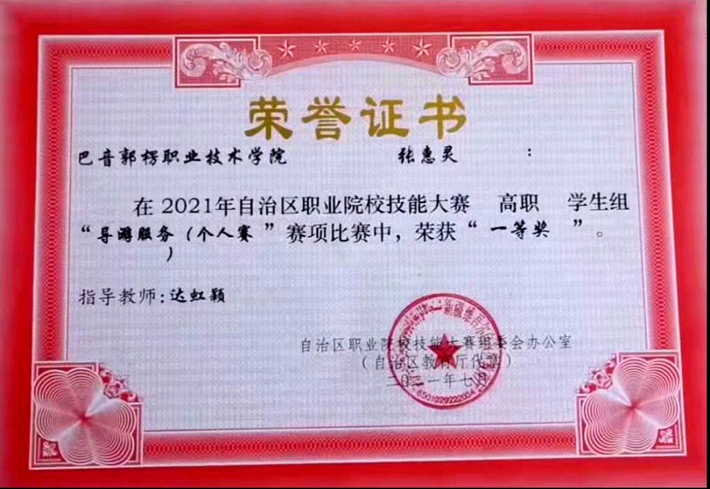 图8 旅游管理专业学生参加2021年全国职业院校技能大赛导游服务获奖证书
