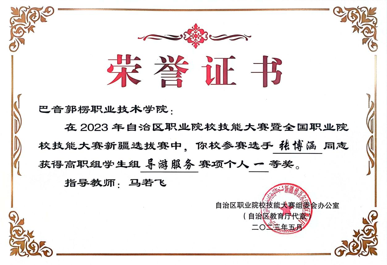 图11 旅游管理专业学生参加2023年自治区职业院校导游服务赛项获二等奖