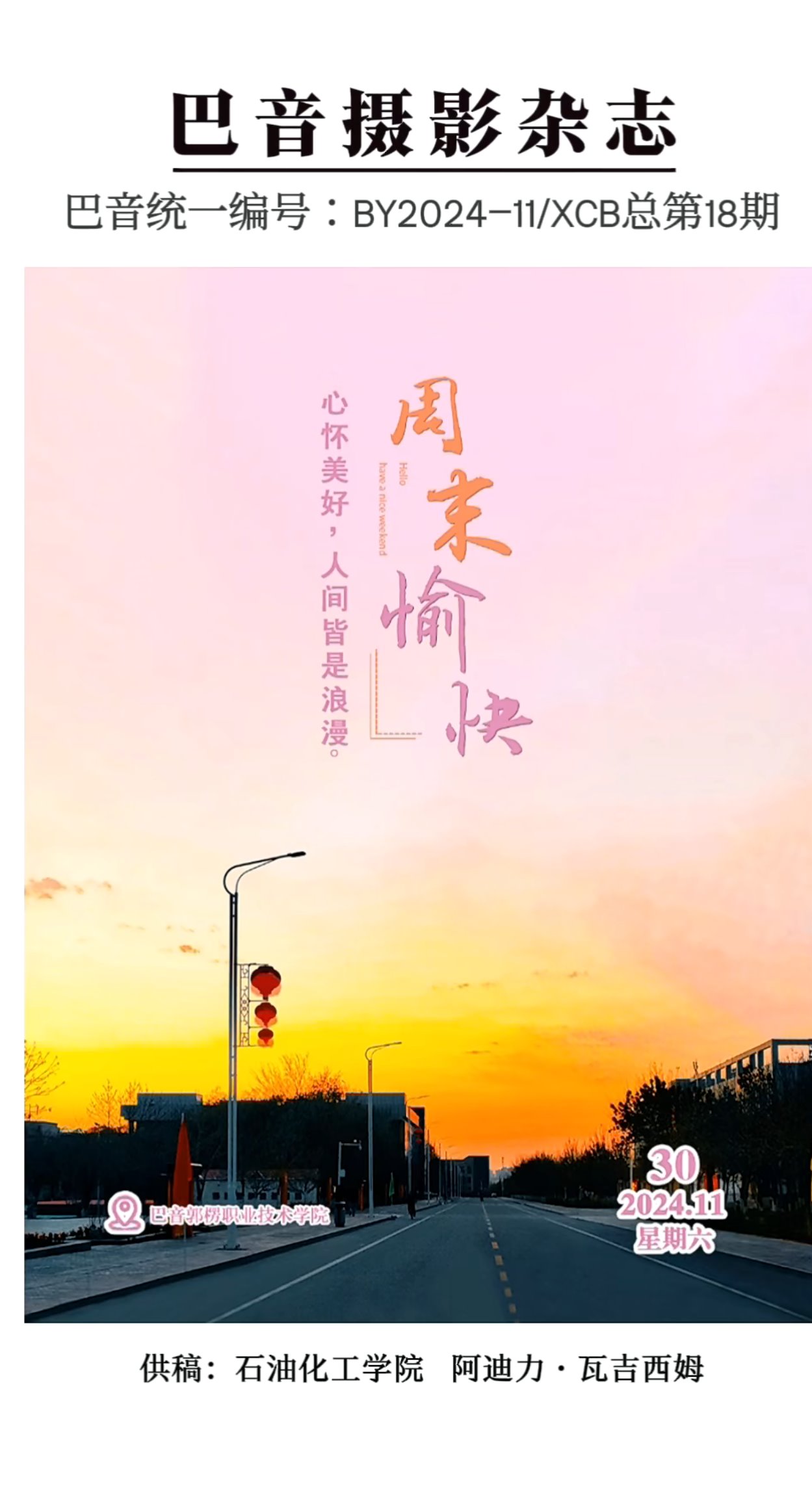 巴音摄影杂志统一编号:BY2024−11/XCB总第18期。“周末愉快...